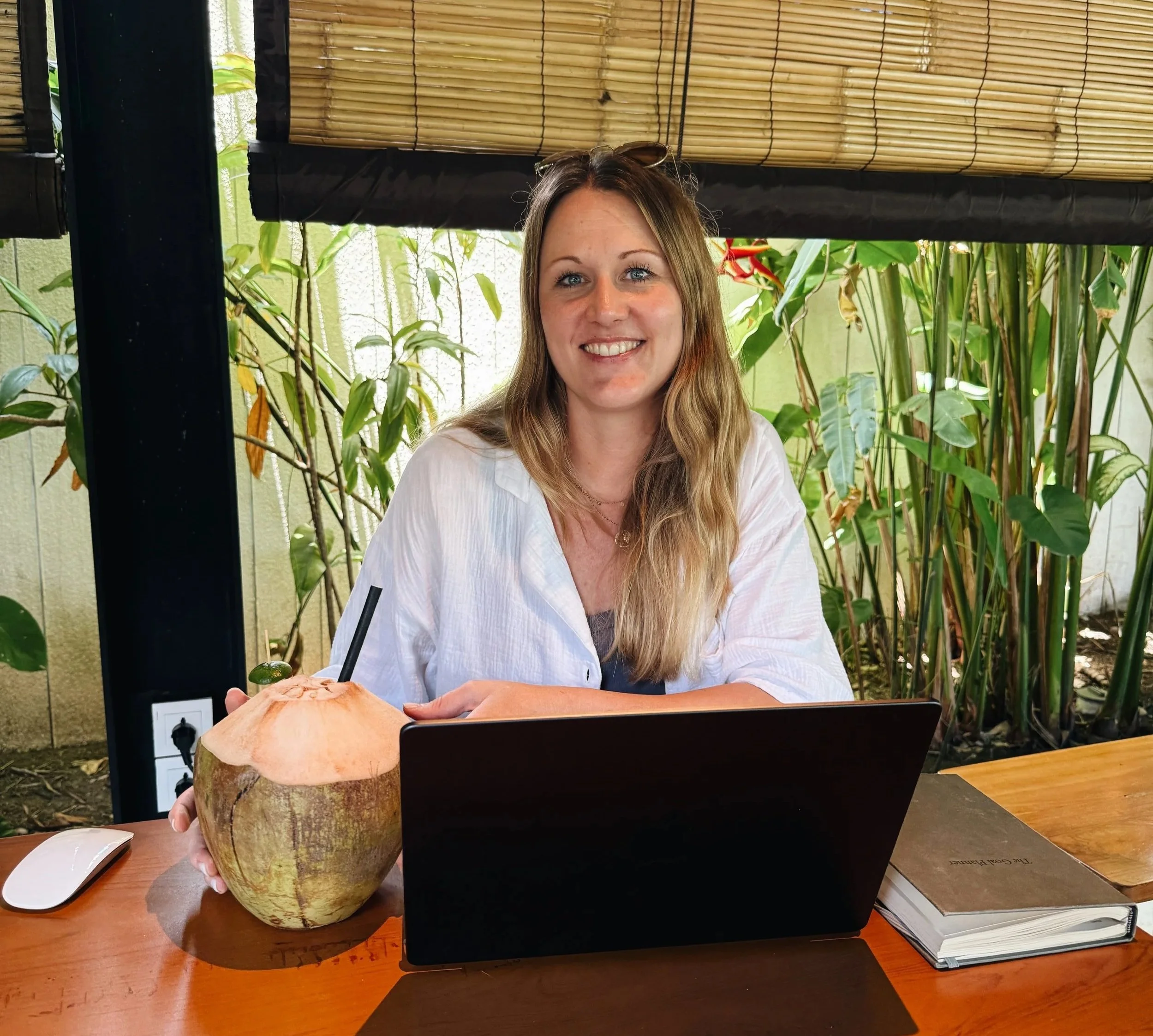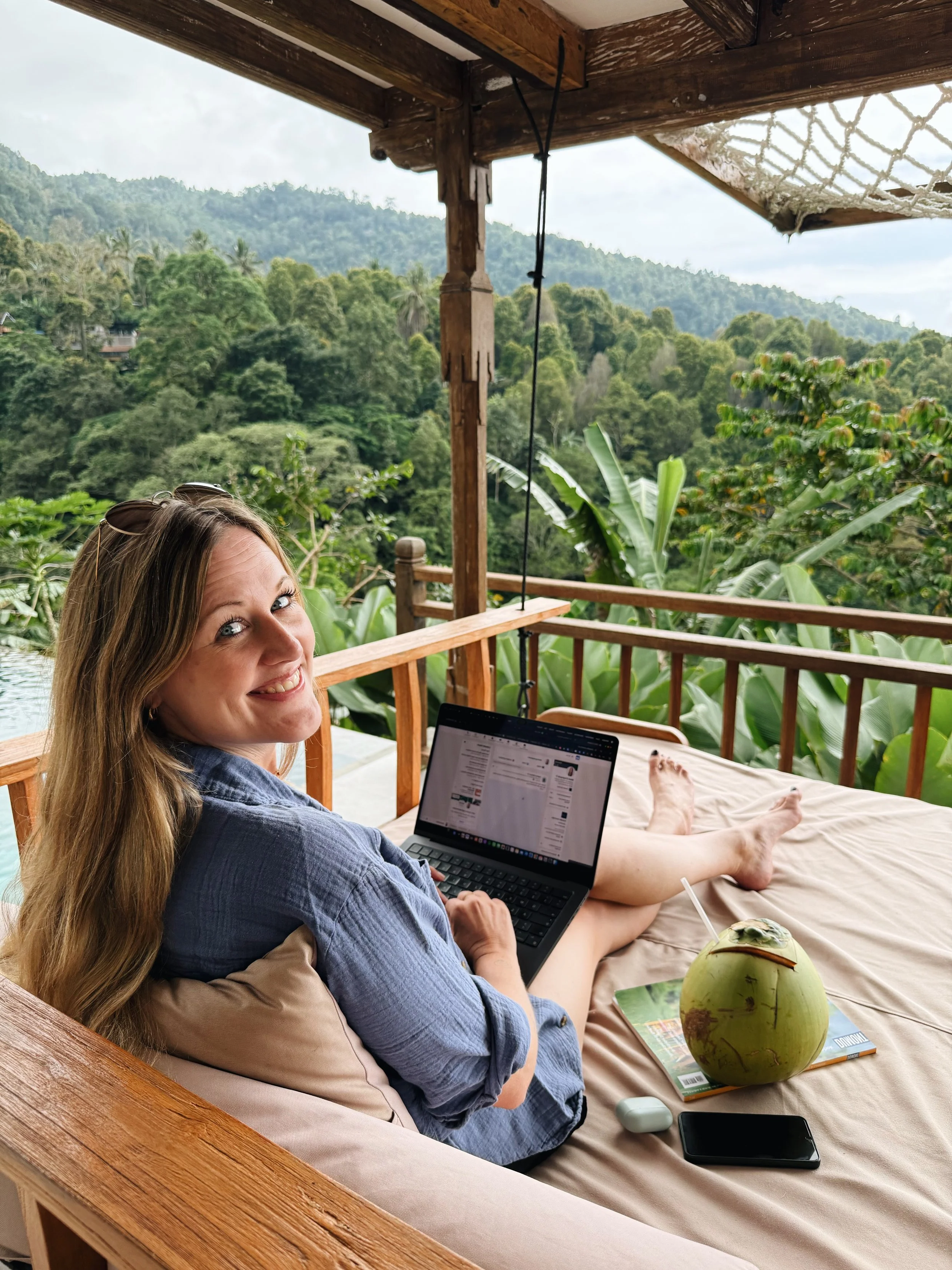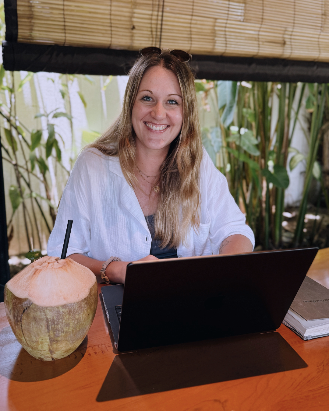 Mittlerweile arbeite ich dort, wo es Sonne und frische Kokosnüsse gibt. Ich habe 3 Jahre Selbstständigkeit und etliche Projekte als Social Media Managerin im Gepäck. Mein Business läuft und ich habe eine klare Mission: kein weiteres Jahr Akquise-Achterbahn für dich.